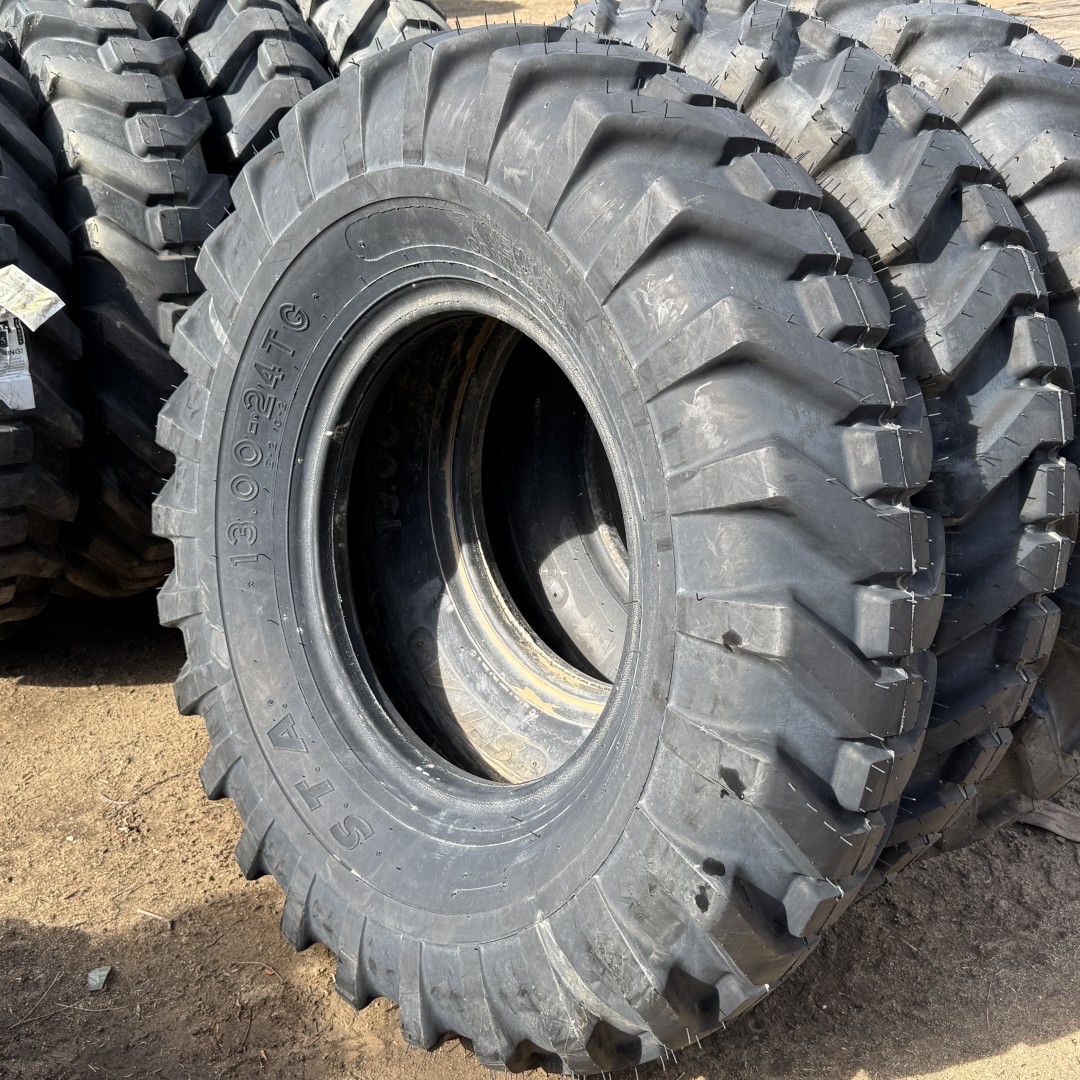 13.00X24 Specialty Tires of America brand bias OTR tractor tire. It is a American Contractor E2/L2/G2/R4 model with a 12-Ply load rating. This is a New tire with a tread depth of 28/32nds. The condition report reads: Unused.