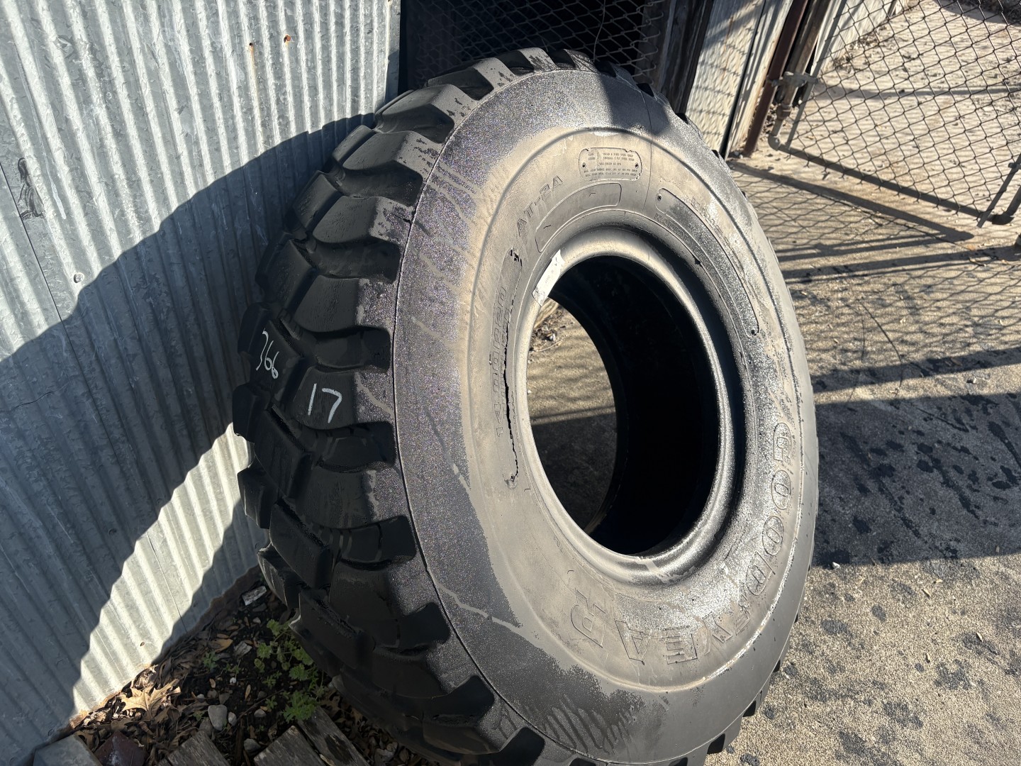 14.00R20 Goodyear brand radial OTR tractor tire. It is a AT2A AT-2A E3/L3/G3 model with a LRJ load rating. This is a Used tire with a tread depth of 20/32nds. The condition report reads: Clean.