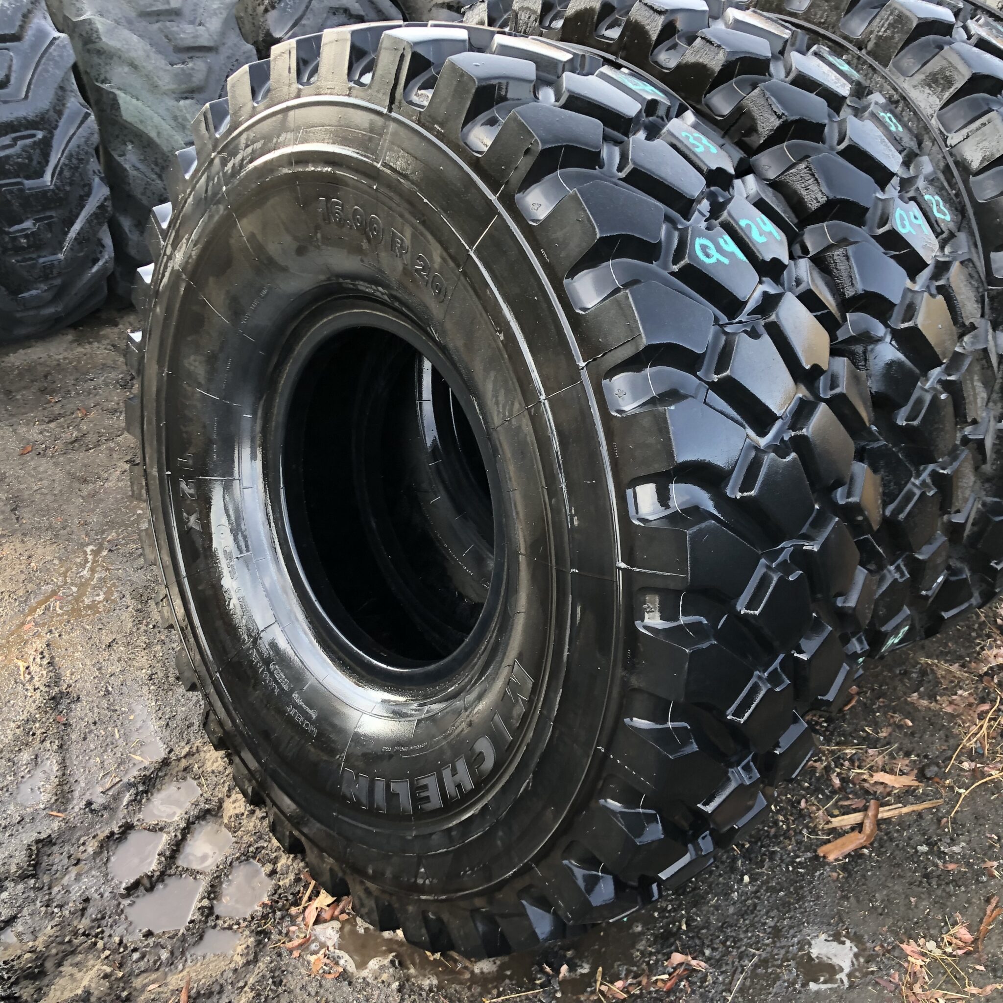 16.00R20 Michelin brand radial OTR tractor tire. It is a XML Military M3 OffRoad model with a 173/170G load rating. This is a Used tire with a tread depth of 32/32nds. The condition report reads: Clean.