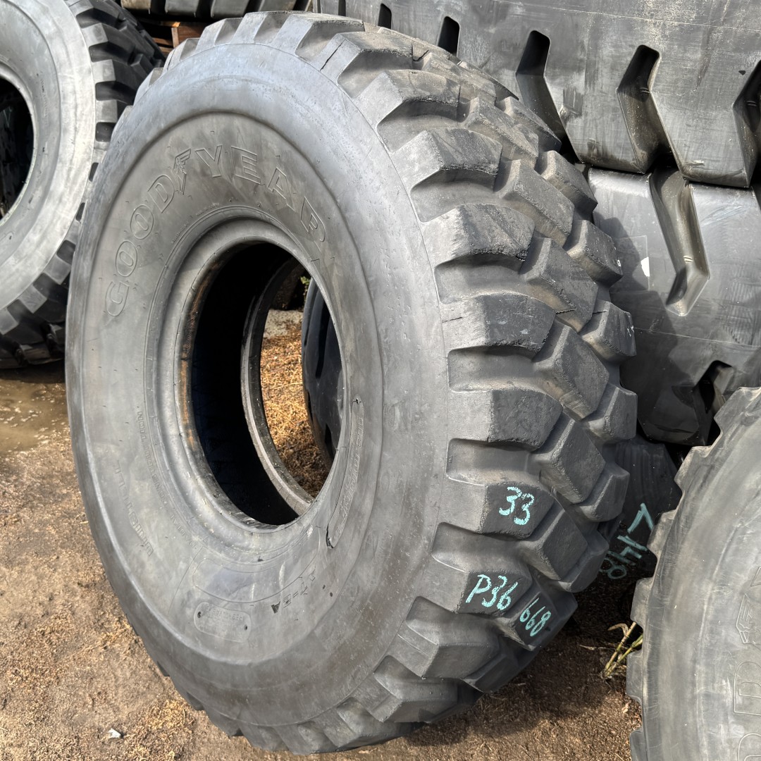 16.00R21 Goodyear brand radial OTR tractor tire. It is a AT2A AT-2A E3/L3/G3 model with a M load rating. This is a Used tire with a tread depth of 33/32nds. The condition report reads: Clean, 1-Balance Pad.