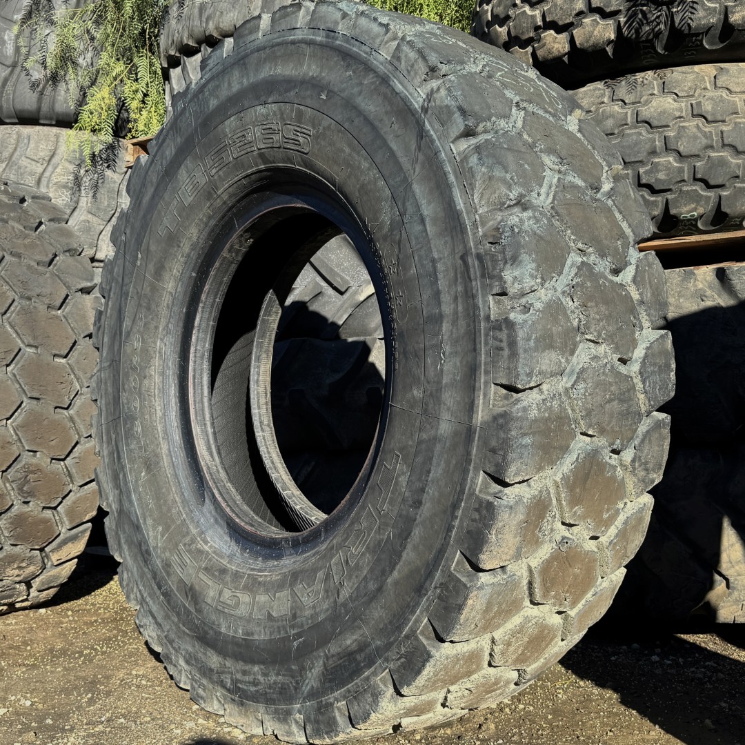 18.00R33 Triangle brand radial OTR tractor tire. It is a TB526S E-4 model with a 2-Star load rating. This is a Used tire with a tread depth of 30/32nds. The condition report reads: Clean, Minor Rock Cuts.