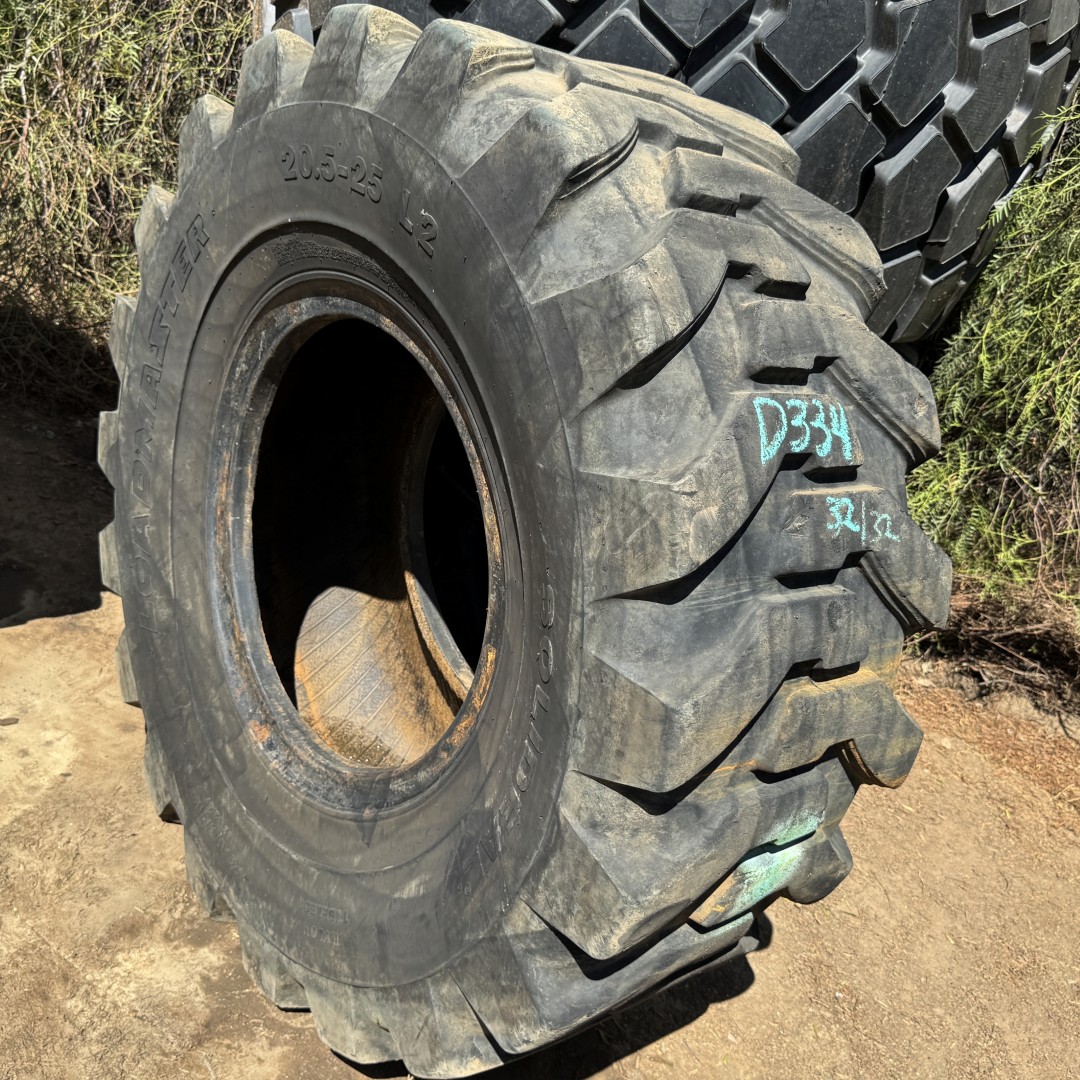 20.5X25 Solideal brand bias OTR tractor tire. It is a Loadmaster L2 G2/L2 model with a 16-Ply load rating. This is a Used tire with a tread depth of 32/32nds. The condition report reads: Clean.