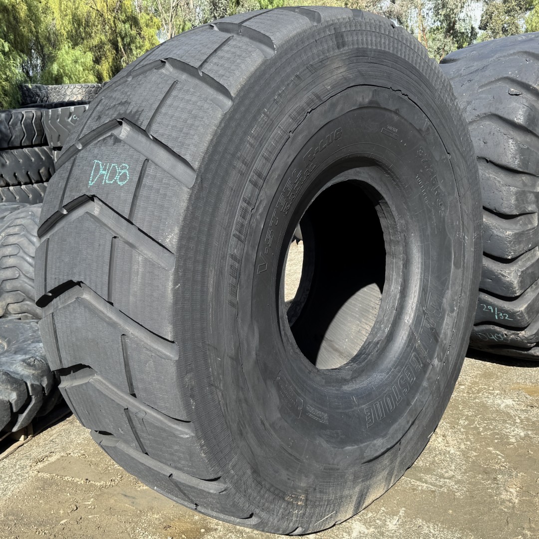 37.25R35 Bridgestone brand radial OTR tractor tire. It is a VRL E-3 model with a 2-Star load rating. This is a Retread-Used tire with a tread depth of 54/32nds. The condition report reads: Clean, Bead Spots.