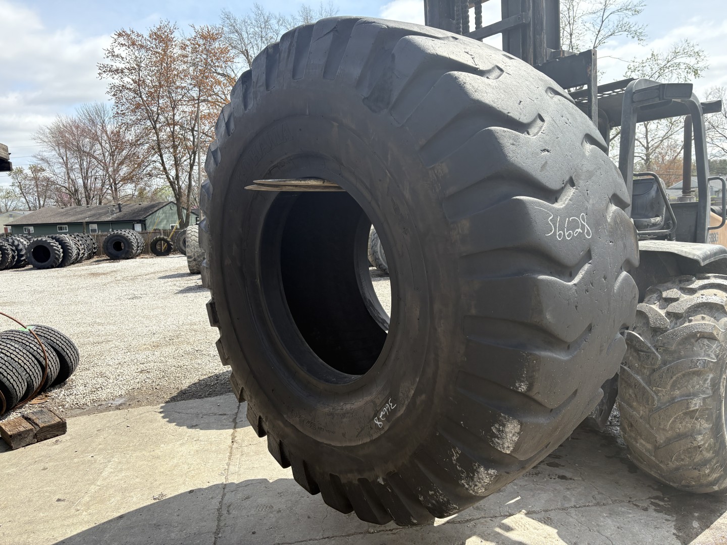 37.5X39 Yokohama brand bias OTR tractor tire. It is a Y67 E3/L3/G3/IND3 model with a 52-Ply load rating. This is a Used tire with a tread depth of 26/32nds. The condition report reads: Clean.