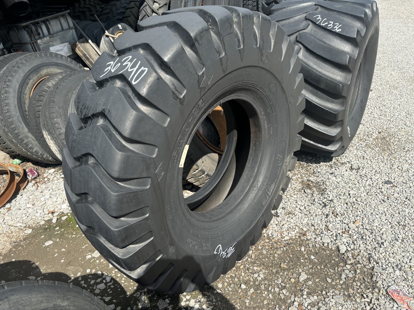 16.00X25 Prime-X brand bias OTR tractor tire. It is a RSS E-4 model with a 28-Ply load rating. This is a Used tire with a tread depth of 46/32nds. The condition report reads: Clean.