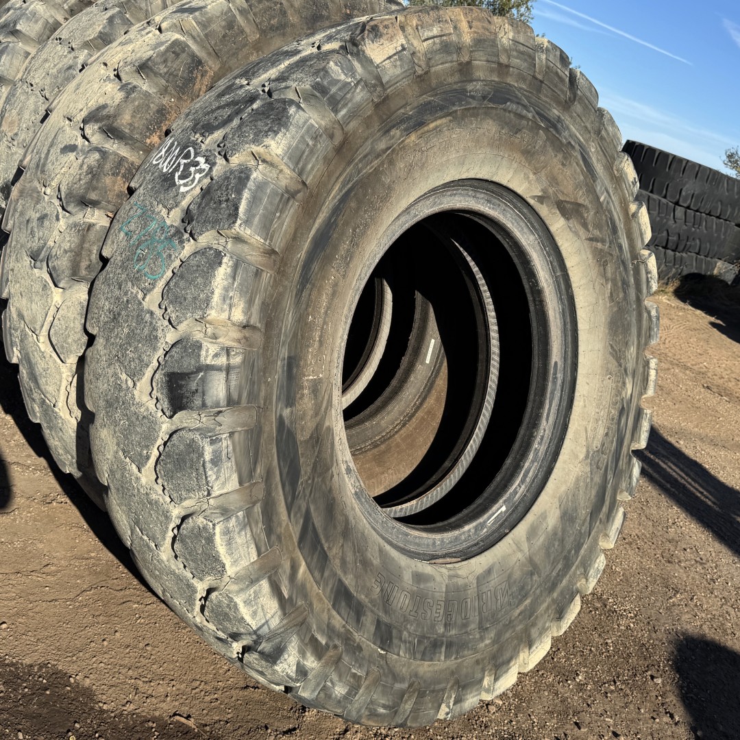18.00R33 Bridgestone brand radial OTR tractor tire. It is a VMTP E-4 model with a 2-Star load rating. This is a Used tire with a tread depth of 3/32nds. The condition report reads: Clean, Casing.