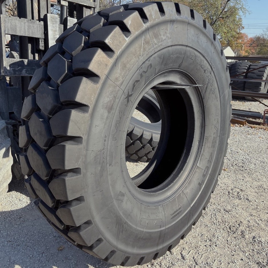 18.00R33 Maxam brand radial OTR tractor tire. It is a MS401 E-4 model with a 2-Star load rating. This is a New tire with a tread depth of 66/32nds. The condition report reads: Unused.