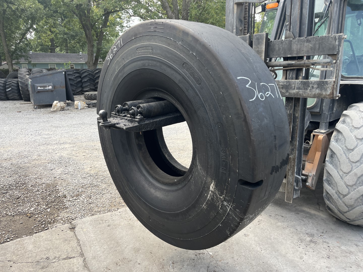 18.00X25 Goodyear brand bias OTR tractor tire. It is a SMO-5E L-5S model with a 28-Ply load rating. This is a New tire with a tread depth of 104/32nds. The condition report reads: Unused.