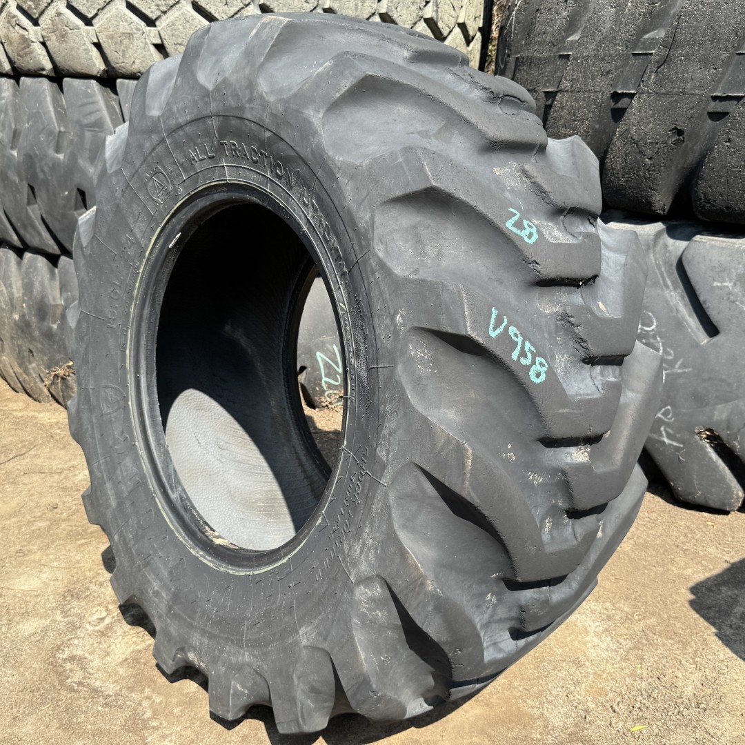 19.5L24 Firestone brand bias OTR tractor tire. It is a All Traction Utility ATU R-4 model with a 12-Ply load rating. This is a Used tire with a tread depth of 28/32nds. The condition report reads: Clean.