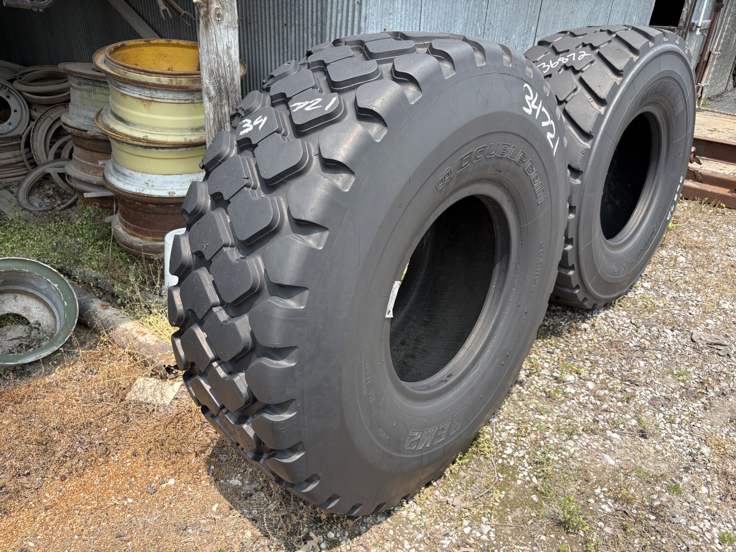 20.5R25 Double Coin brand radial OTR tractor tire. It is a REM2 E-3/L-3 model with a 2-Star load rating. This is a Used tire with a tread depth of 37/32nds. The condition report reads: Clean.