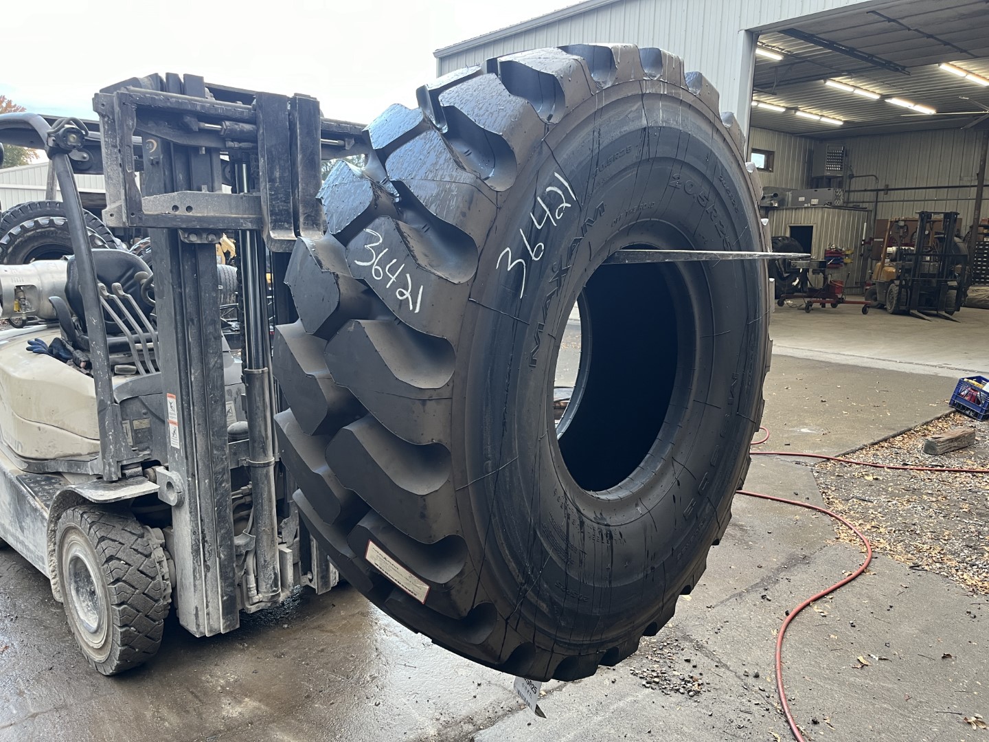 20.5R25 Maxam brand radial OTR tractor tire. It is a MS503 L-5T model with a 2-Star load rating. This is a New tire with a tread depth of 88/32nds. The condition report reads: Unused.