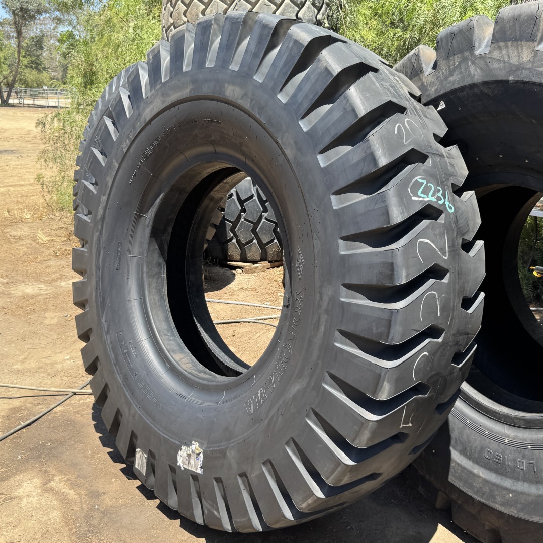 21.00X35 Yokohama brand bias OTR tractor tire. It is a Y523 E-4/IND-4 model with a 40-Ply load rating. This is a New tire with a tread depth of 78/32nds. The condition report reads: Unused.