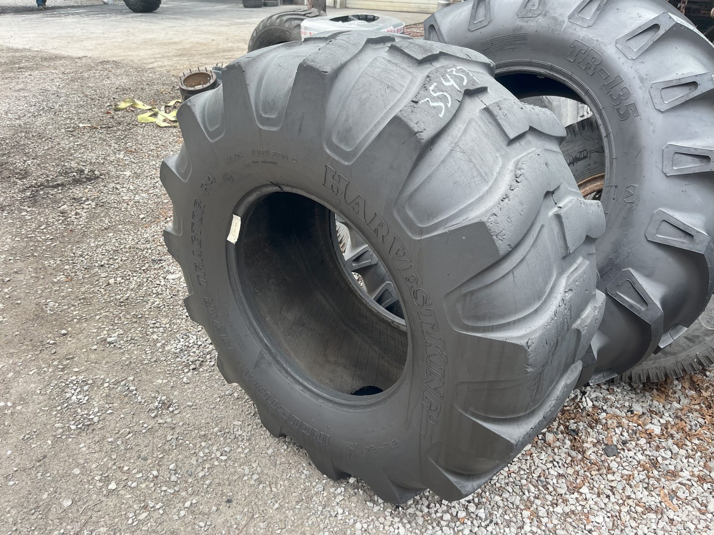 21LX24 Harvest King brand bias OTR tractor tire. It is a Industrial Rear Tractor R-4 model with a 12-Ply load rating. This is a Used tire with a tread depth of 28/32nds. The condition report reads: Clean.