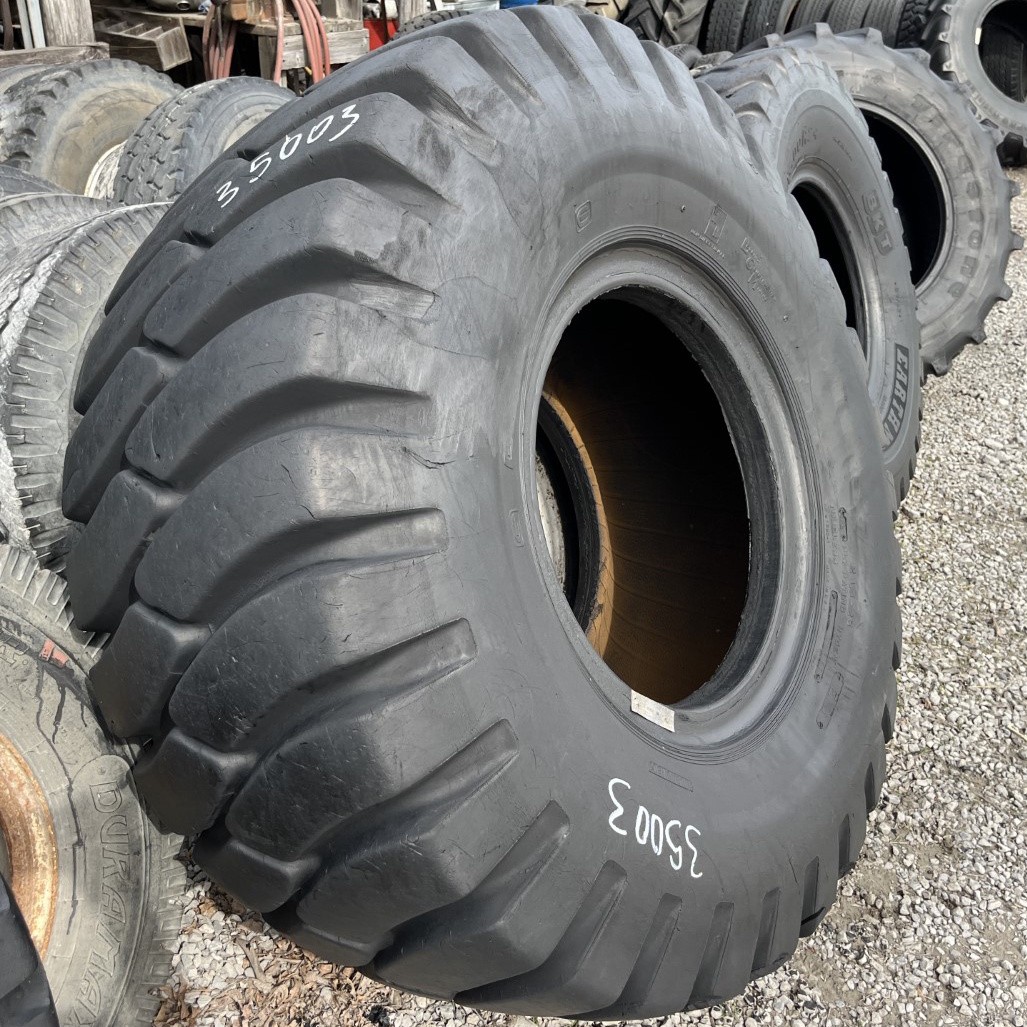 23.5X25 General brand bias OTR tractor tire. It is a NDLCM E-3/L-3 model with a 16-Ply load rating. This is a Used tire with a tread depth of 36/32nds. The condition report reads: Clean, Sidewall Spots.
