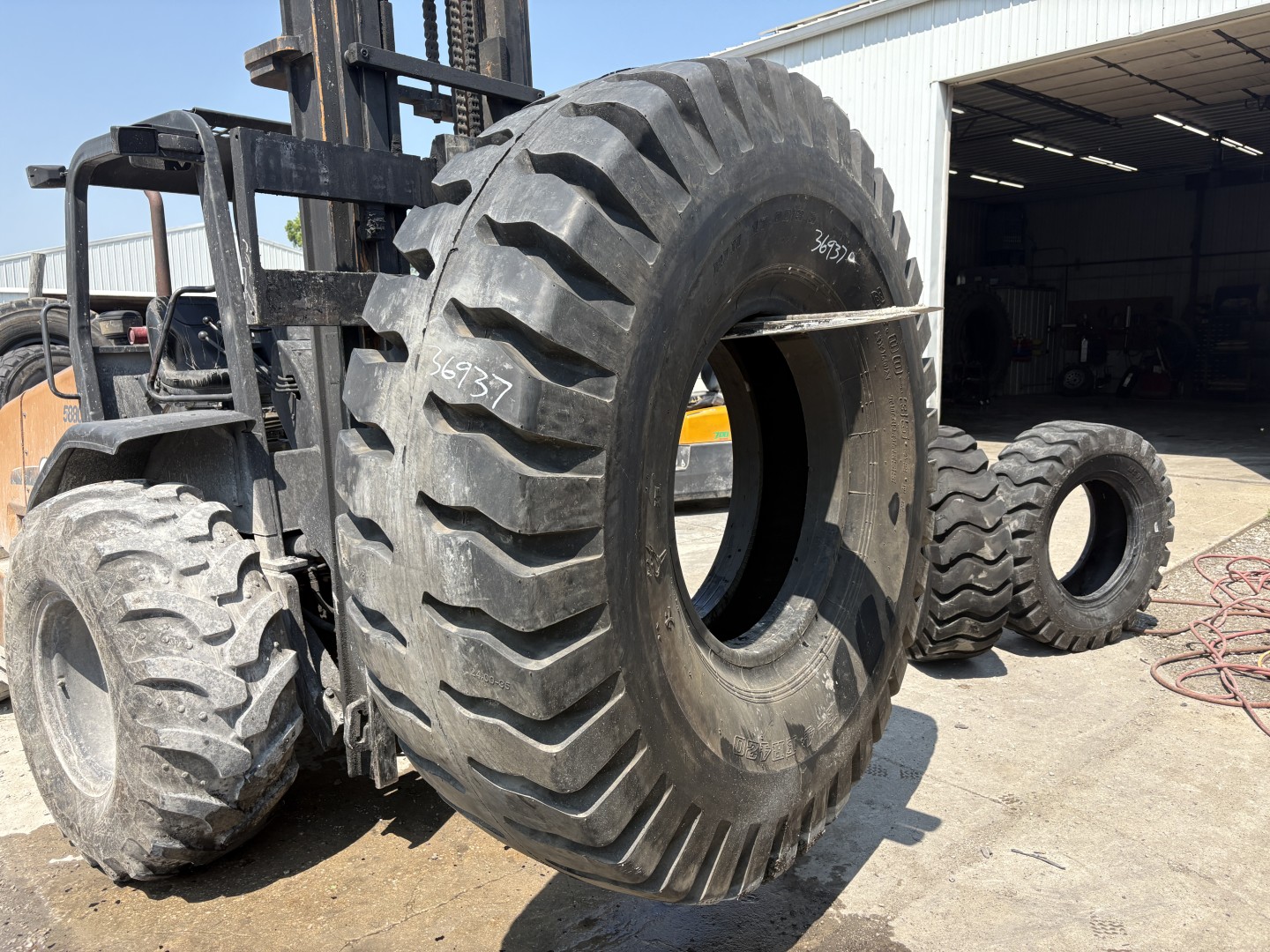 24.00X35 Torch brand bias OTR tractor tire. It is a ER420 E-4 model with a 42-Ply load rating. This is a New tire with a tread depth of 72/32nds. The condition report reads: Unused.
