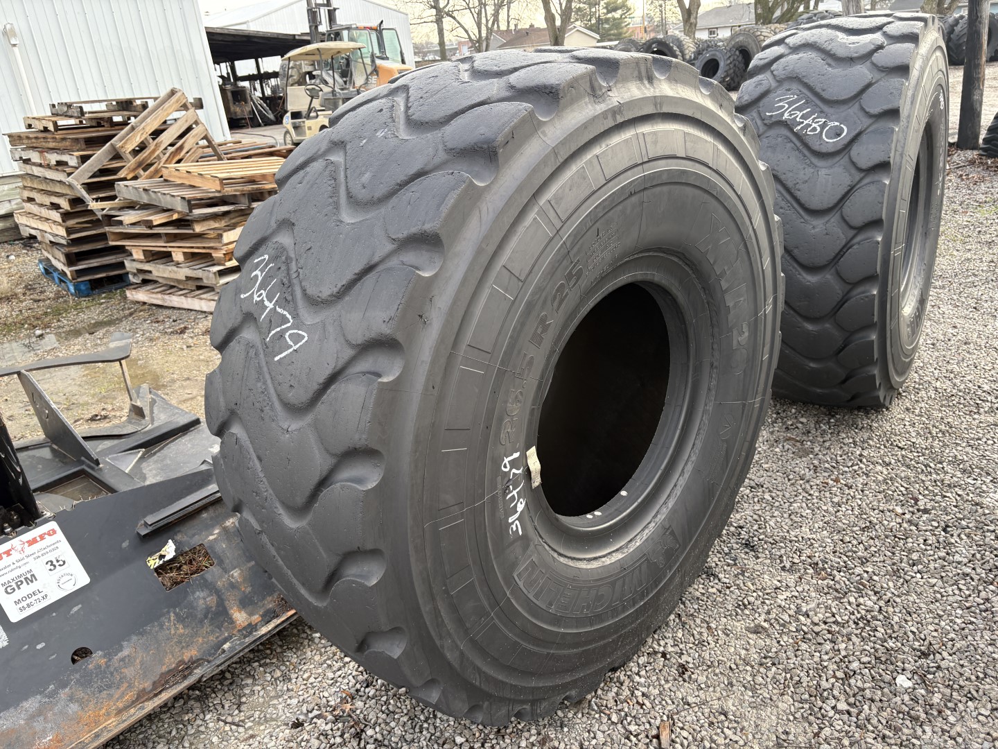 26.5R25 Michelin brand radial OTR tractor tire. It is a XHA2 E-3/L-3 model with a 2-Star load rating. This is a Used tire with a tread depth of 16/32nds. The condition report reads: Clean.