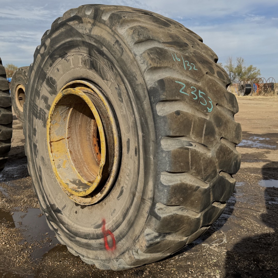 26.5R25 Titan brand radial OTR tractor tire. It is a STL3 E-3/L-3 model with a 2-Star load rating. This is a Used tire with a tread depth of 16/32nds. The condition report reads: Clean, On Rim.