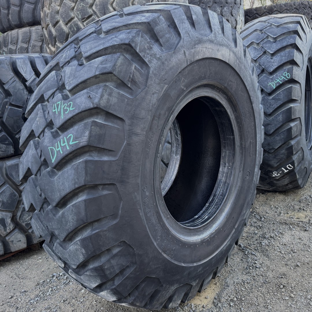 29.5X35 Firestone brand bias OTR tractor tire. It is a SRG Super Rock Grip E3/L3 model with a 34-Ply load rating. This is a Used-Low-Hour tire with a tread depth of 47/32nds. The condition report reads: Clean.