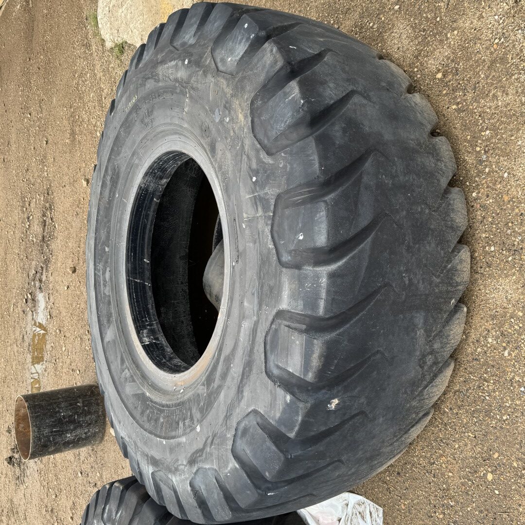 29.5X35 Firestone brand bias OTR tractor tire. It is a SRG Super Rock Grip E-3/L-3 model with a 34-Ply load rating. This is a Used tire with a tread depth of 12/32nds. The condition report reads: Clean, Low Rubber.