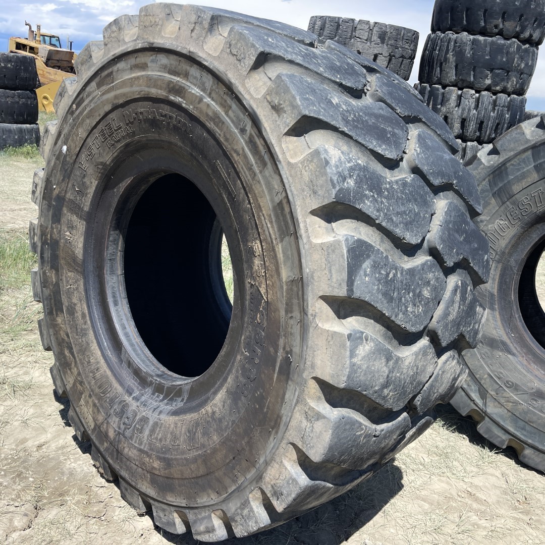 35/65R33 Bridgestone brand radial OTR tractor tire. It is a VSNT E-4/L-4 model with a 2-Star load rating. This is a Used tire with a tread depth of 40/32nds. The condition report reads: Clean, Mildly Weathered Tread.