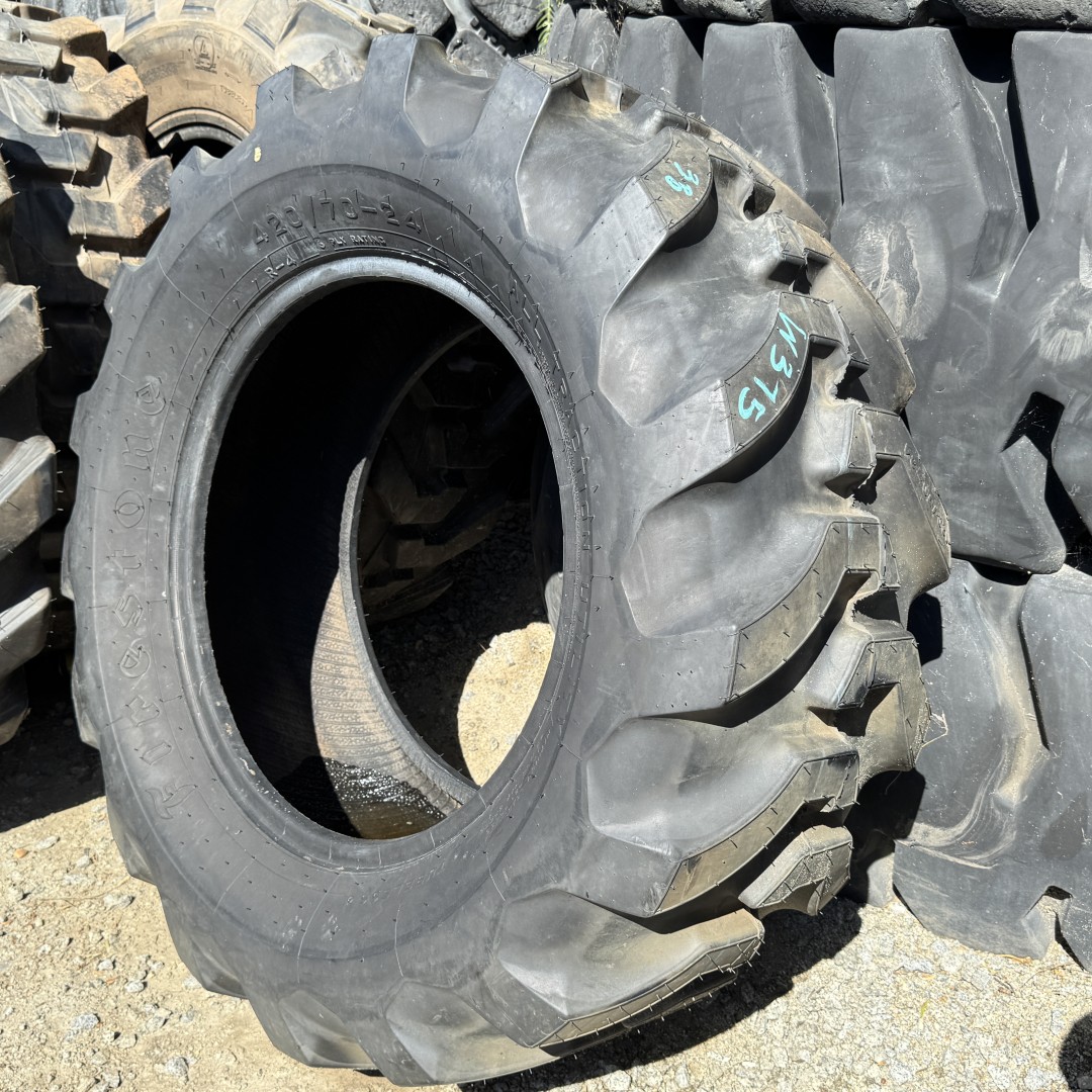 420/70X24 Firestone brand bias OTR tractor tire. It is a All Traction Utility ATU R4 model with a 6-Ply load rating. This is a New tire with a tread depth of 38/32nds. The condition report reads: Unused.