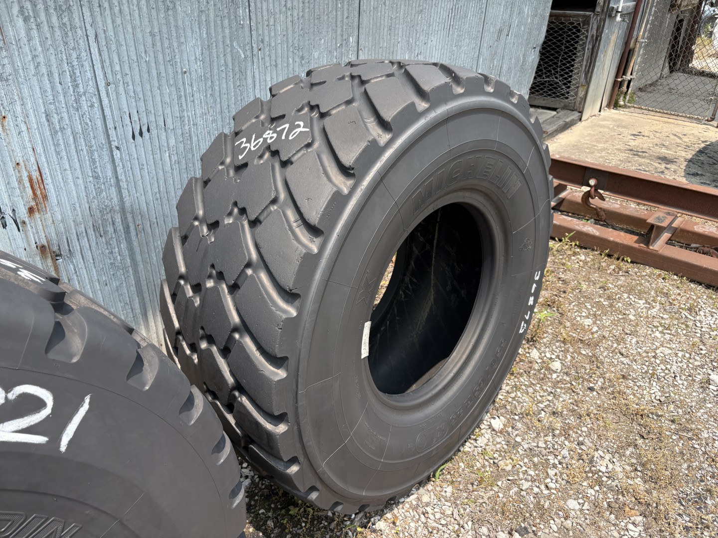 550/65R25 Michelin brand radial OTR tractor tire. It is a XLD L-3 model with a 1-Star load rating. This is a Used tire with a tread depth of 21/32nds. The condition report reads: Clean, 1-Nail Patch.