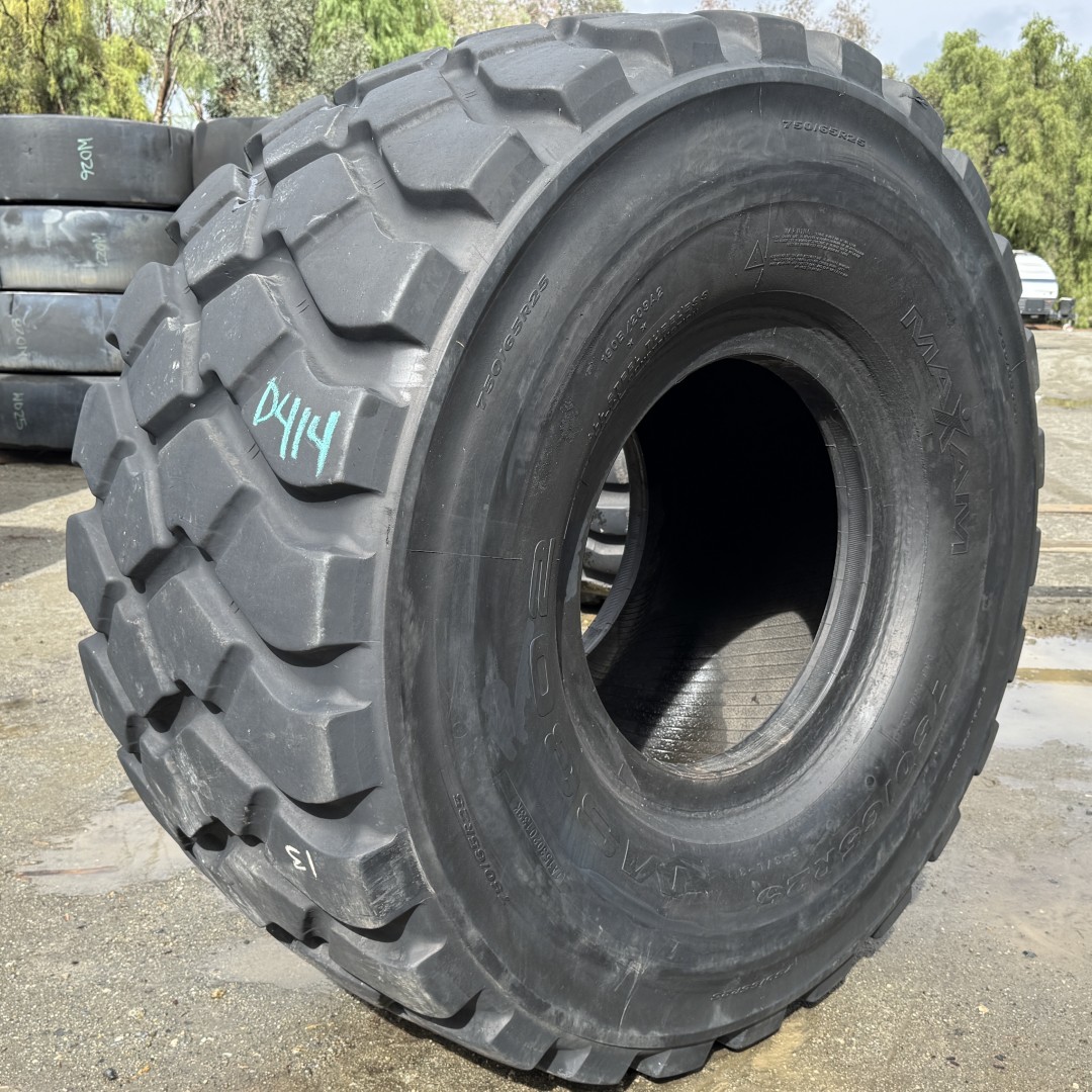 750/65R25 Maxam brand radial OTR tractor tire. It is a MS302 E-3+/L-3+ model with a 2-Star load rating. This is a Used tire with a tread depth of 37/32nds. The condition report reads: Clean, Sidewall & Liner Spots.