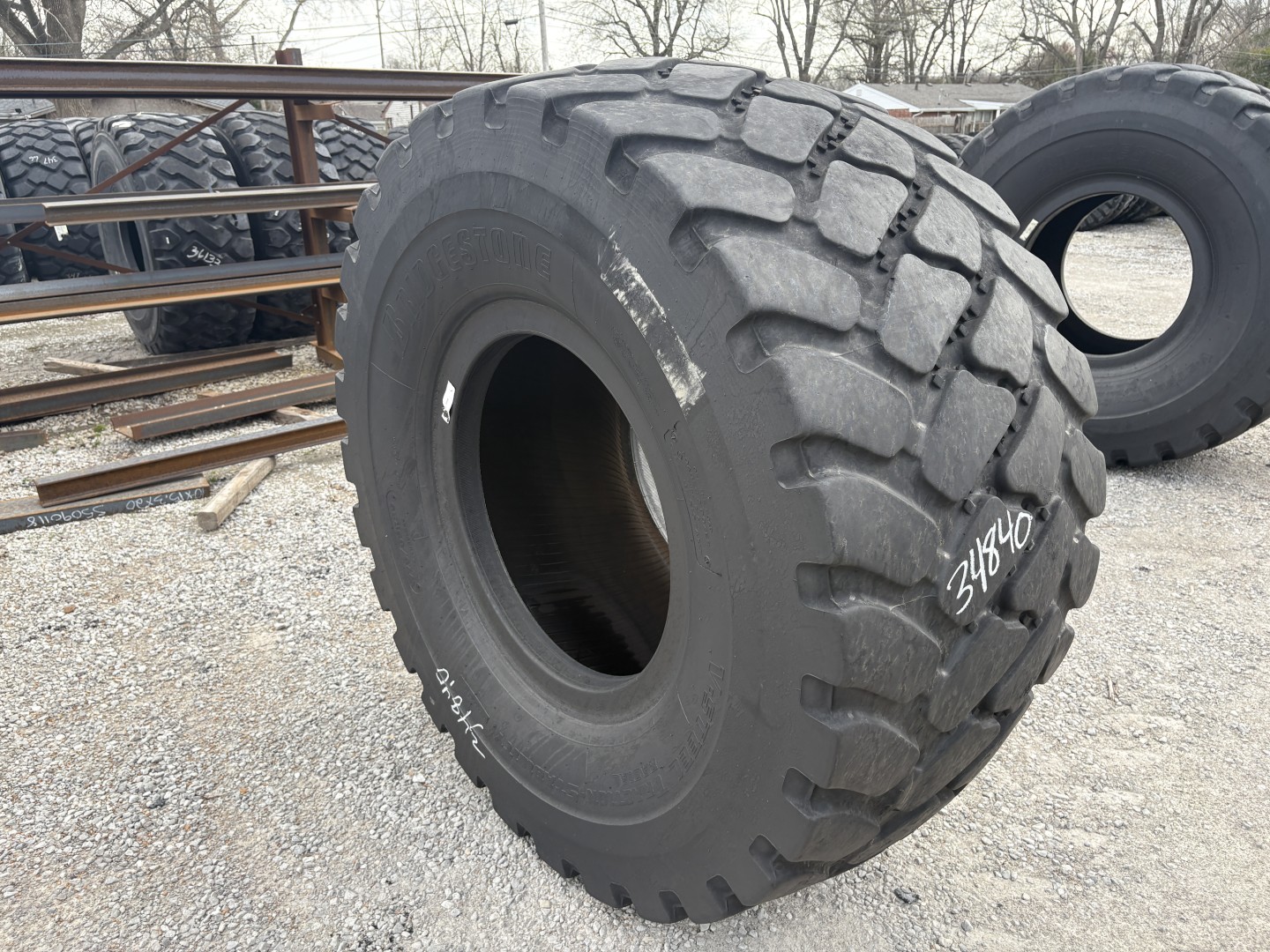775/65R29 Bridgestone brand radial OTR tractor tire. It is a VTS L-3 model with a 1-Star load rating. This is a Used tire with a tread depth of 20/32nds. The condition report reads: Clean.